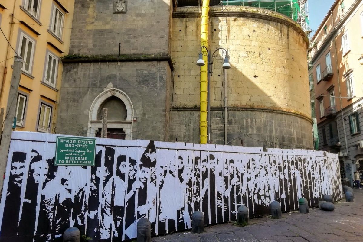 علاوه بر آن، خود ناپل نماد جنبش مقاومت مردم ایتالیا در جریان جنگ جهانی دوم بود. شورش سپتامبر ۱۹۴۳ موسوم به چهار روز در ناپل نقطه عطف در تاریخ این شهر جنوبی بود و آن را از اشغال آلمان نازی رها کرد. نقاشی دیواری کاستالدو از کارگران فلسطینی «به بیت‌لحم خوش آمدید» تنها کار او درباره فلسطین و خاورمیانه نیست و این هنرمند ایتالیایی سال‌ها یعنی از ۲۰۰۷ تا ۲۰۱۱ در فلسطین کار عکاسی خبری کرده است.