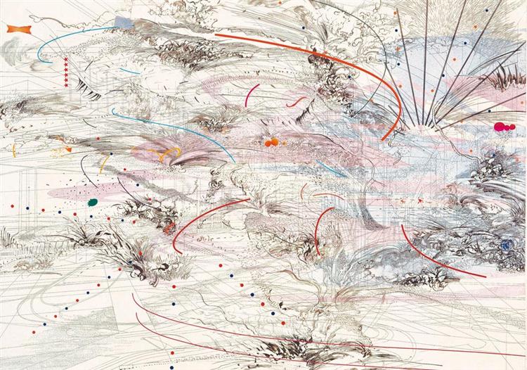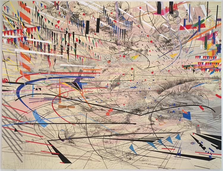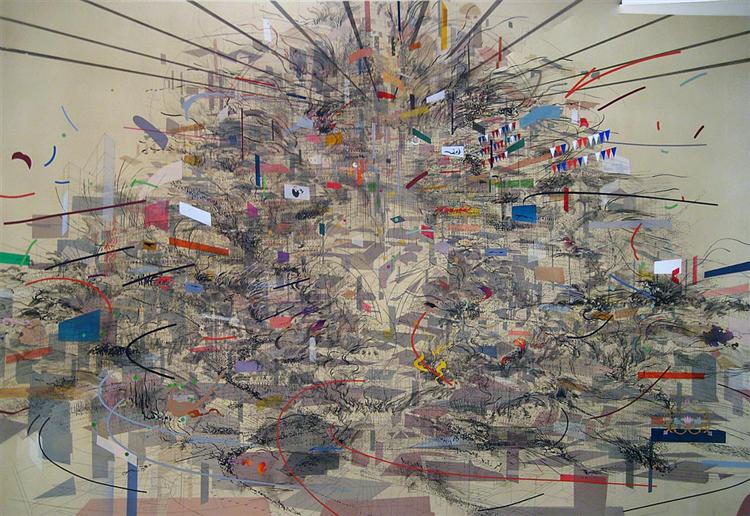 من از علامت گذاری انتزاعی من به عنوان یک نوع نشانه واژگان، نشانه یا زبان برای شخصیت هایی که دارای هویت و سازمان اجتماعی هستند فکر می کنم. شخصیت های نقشه های من نقشه ها، سفر ها، تکامل یافته ها و تمدن ها را ساخته اند. من نقشه ها، تحلیل ها و نقشه های تجربیات و توسعه خود را: شهرستانها، حومه های آنها، درگیری های خود و جنگ های خود را. نقاشی ها در یک محل نامشهود رخ داد: زمین خالی، فضای نقشه انتزاعی. همانطور که کار خود را ادامه دادم، نیاز به یک زمینه برای علامت ها، شخصیت ها بود. با ترکیب بسیاری از انواع طرح های معماری و نقاشی ها، من سعی کردم تا دیدگاه استعاری، تکتونیکی تاریخ ساختاری ایجاد کنم. من می خواستم نقاشی خود را به موقع و مکان برسانم.