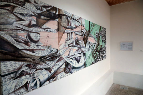 سیاهمرد افزود: در این مجموعه اثری به نام گورنیکا وجود دارد که به لحاظ فیزیکی موضوع "چالش عناصر" را نشان میدهد. در این 2 لت، دری وجود دارد که باز و بسته میشود و روی آن چیدمانی از نخ وجود دارد. سایه این نخها را با مداد روی بوم نقاشی کردهام اما وقتی کار را جمع کرده و دوباره باز میکنیم این نخها جابجا میشوند و سایهها دیگر در جای قبلی خود قرار ندارند. این کار نماد عناصری است که قبلاً در زندگی ما بودند و حالا نیستند. چالش عناصر در این کار خیلی بارز است و عناصر مدام با هم در جدل هستند. من از دید معاصرتر به کار پیکاسو نگاه کردم تا در فضای تجسمی بتوانم این جنگ و جدل میان عناصر را باز تعریف کنم.